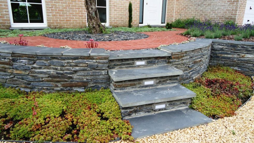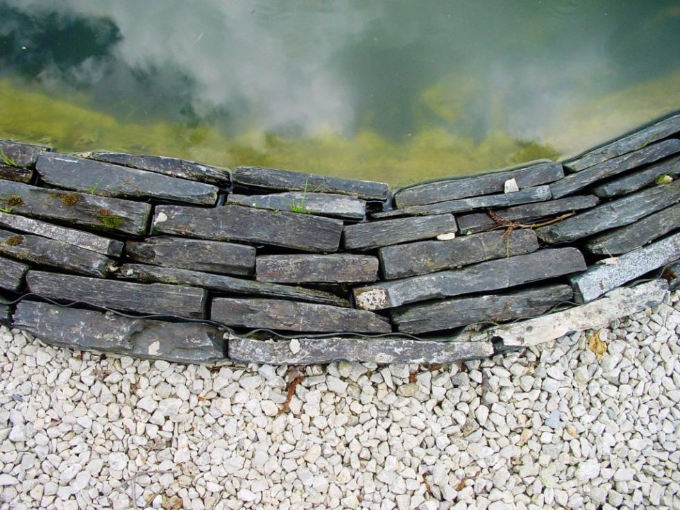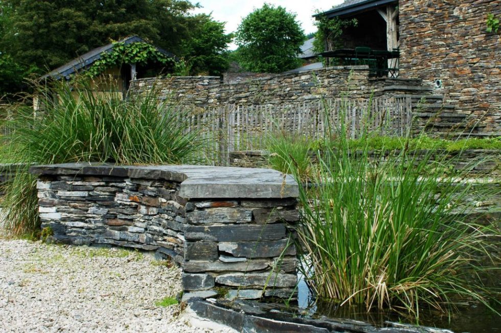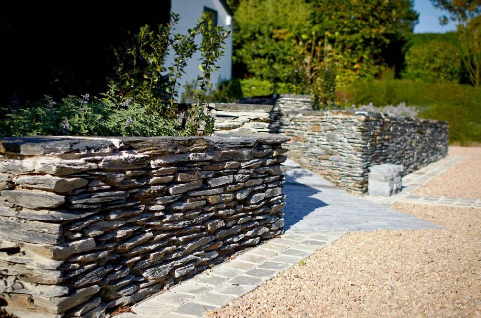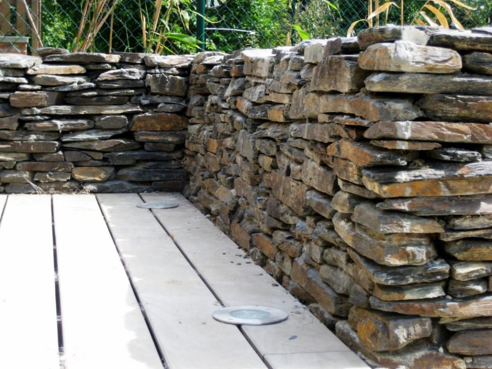Les murets en pierre de schiste ardoisier peuvent se constituer de plaquettes ou de parement en schiste.
