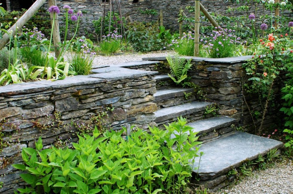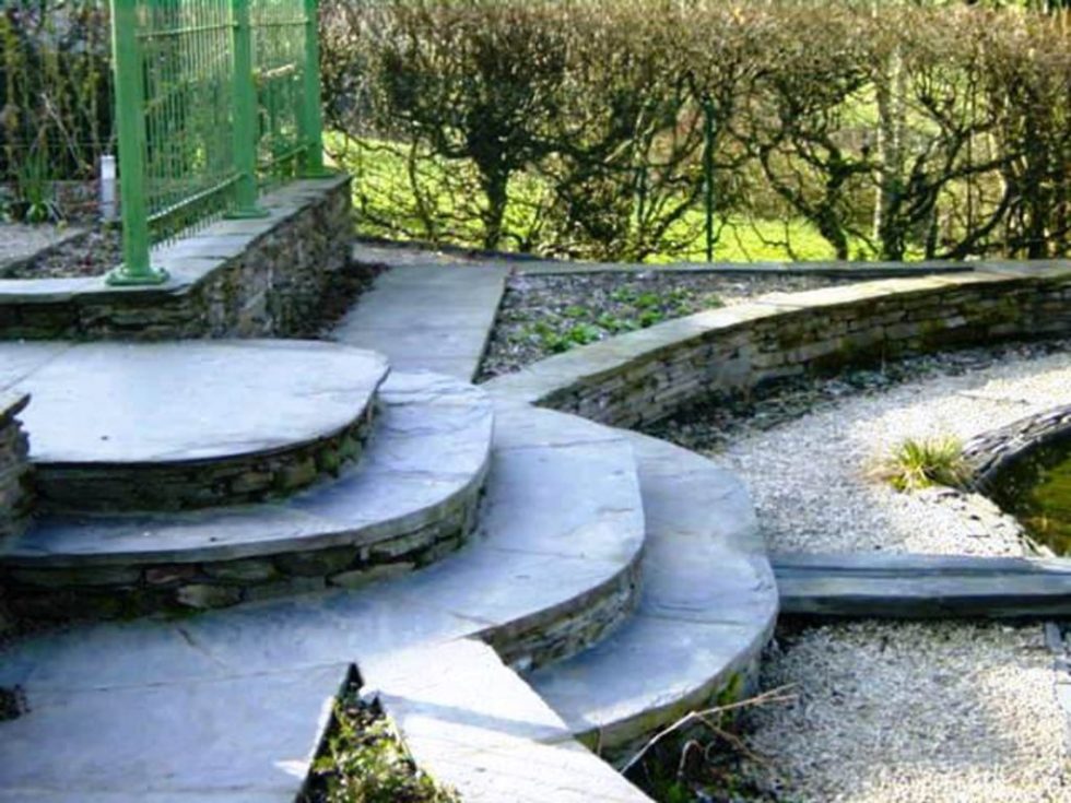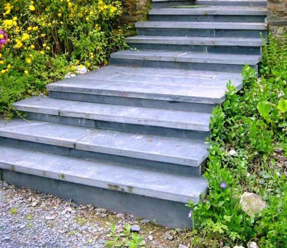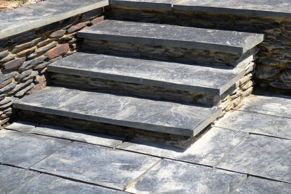 Esthétique et résistant, l’escalier en pierres d’ardoise de schiste donne accès aux terrasses ou jardins et sert d’habillage à vos espaces.