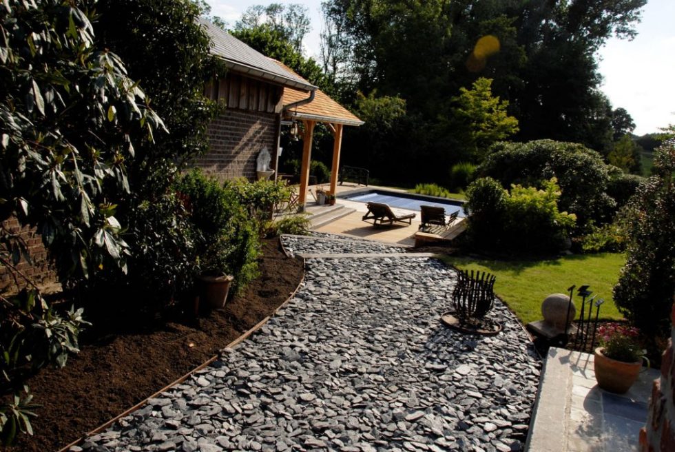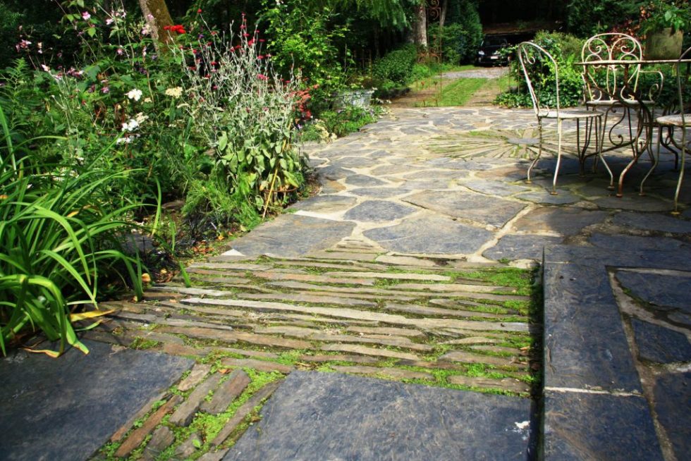 Pratique et agréable la pierre naturelle d’ardoise de schiste peut être placée partout dans le jardin de façon charmante et agréable.